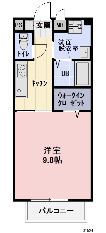 | 間取り詳細 | K 畳 、 洋室 9.8畳 |