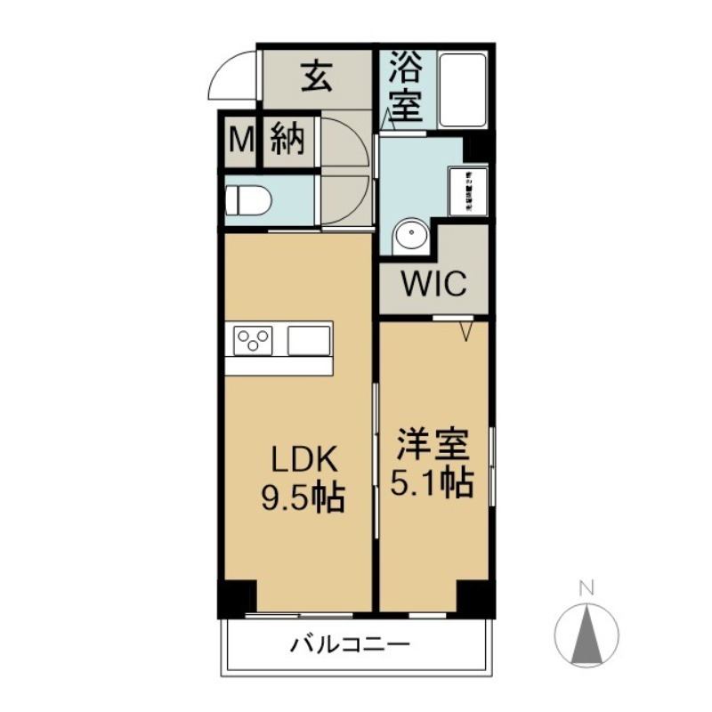 | 間取り詳細 | LDK 9.5畳 、 洋室 5.1畳 |